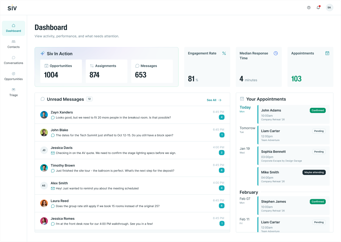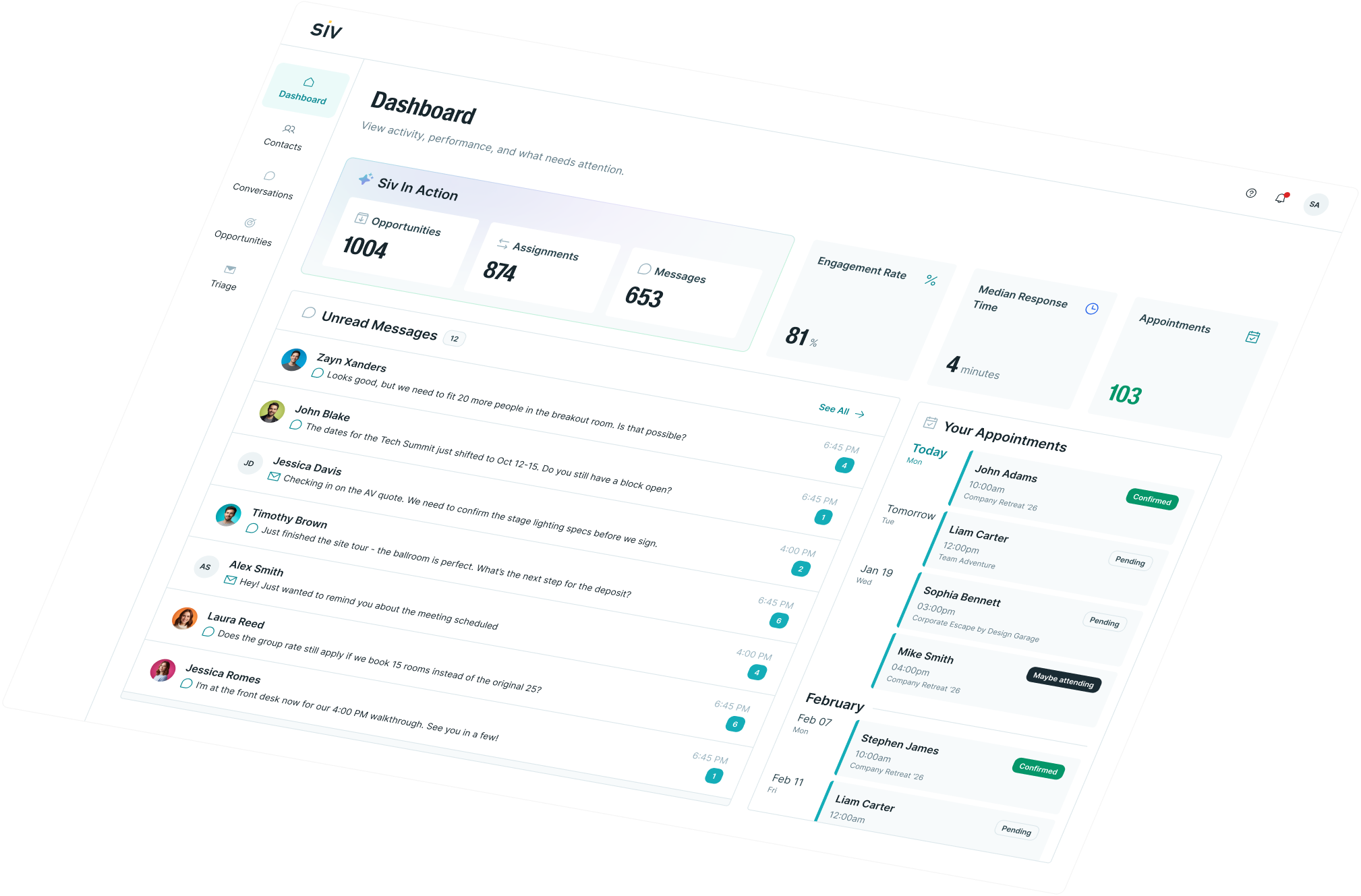 Planners expect momentum. Siv helps you carry the conversation forward (even while your team sleeps.)