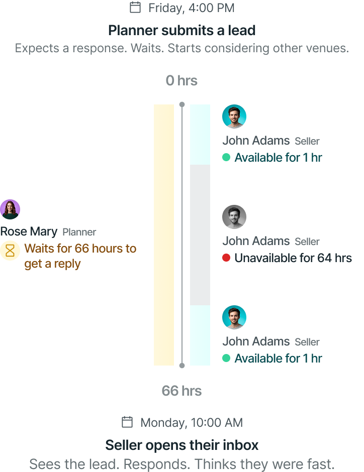 And while sellers are working hard to respond during office hours, planners are using a different clock to evaluate your team.